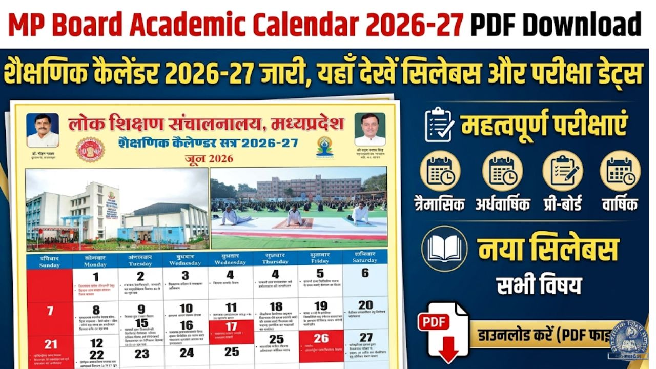 एमपी बोर्ड शैक्षणिक कैलेंडर 2026-27 जारी कर दिया गया है। अगर आप इसको डाउनलोड करने की सोच रहे हैं तो आप बिल्कुल सही जगह आए हैं। अगर आपको इसका सही इस्तेमाल करना नहीं आता है, तो आज के इस आर्टिकल में हम आपको यह भी सिखाएंगे। इस कैलेंडर में त्रैमासिक परीक्षा, अर्धवार्षिक परीक्षा, प्री-बोर्ड परीक्षा और वार्षिक परीक्षा के साथ-साथ मासिक परीक्षाओं का सिलेबस और कितना सिलेबस पूछा जाएगा, यह सभी जानकारी होती है। इसी के साथ ही कब सरकारी छुट्टी है, यह जानकारी भी होती है। तो चलिए, आपको मैं इसके बारे में नीचे विस्तार से जानकारी बताता हूँ।