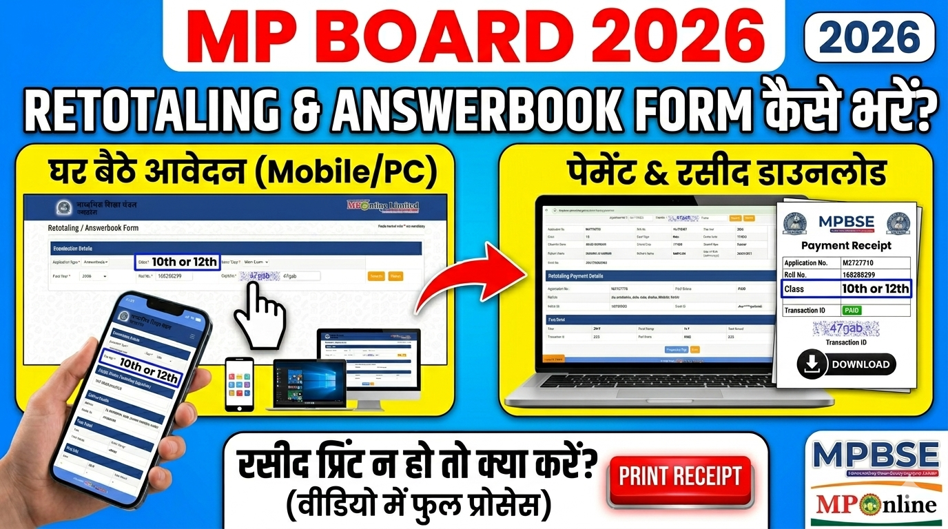 इस आर्टिकल में हम आपको बताएंगे कि आप अपने मोबाइल या कंप्यूटर की सहायता से बहुत ही आसानी से अपना Retotaling Result 2026 या अपने फॉर्म का Status (स्थिति) कैसे चेक कर सकते हैं। इसके साथ ही, जिन्होंने आंसर बुक मंगाने के लिए आवेदन किया था, उन्हें उनकी कॉपी कब और कैसे मिलेगी, इसकी पूरी जानकारी (A to Z) नीचे दी गई है।
